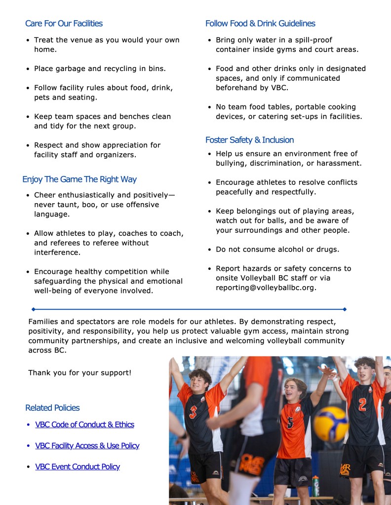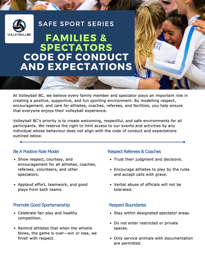 FAMILIES & SPECTATORS CODE OF CONDUCT AND EXPECTATIONS🏐