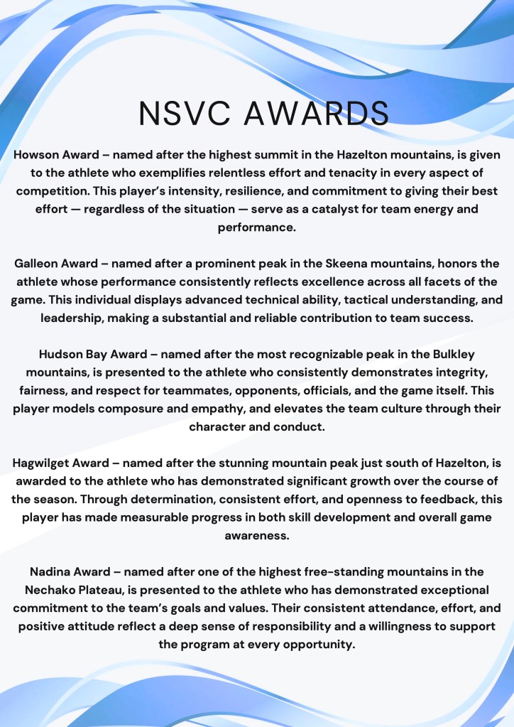 Our competitive year-end banquet was held May 9th. Below is a list of the award definitions that highlight the achievements recognized among our athletes.🏐